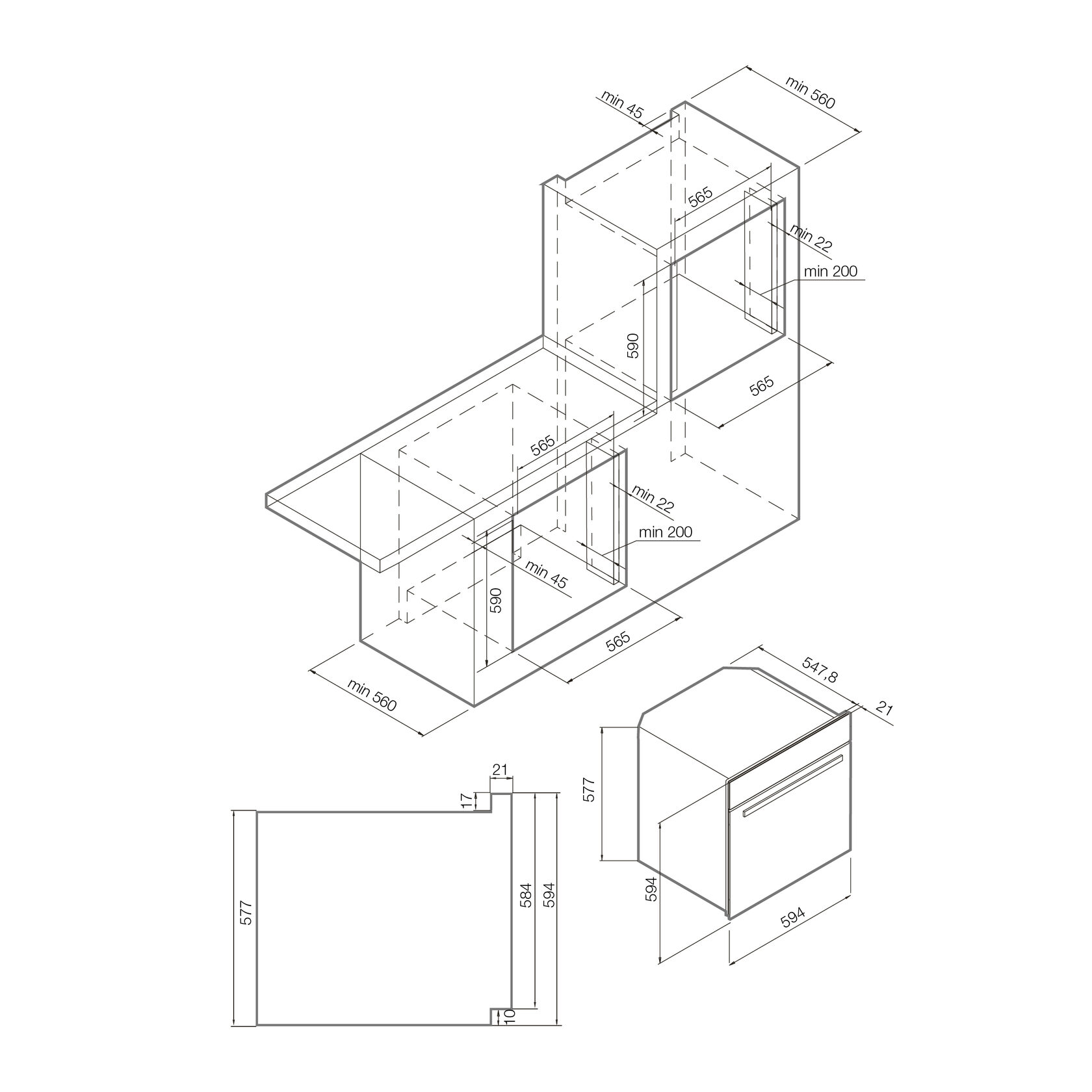 Универсальный противень Глубокий противень/поддон для жира Решетка для жарки Телескопические направляющие Холодное атермальное стекло CoolTouch Плавное закрывание дверцы Дверца с 4х-слойным остеклением
