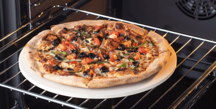 Если вы любите готовить пиццу или другую выпечку, используйте для их приготовления камень для пиццы. Он сделан из шамотной глины, которая равномерно распределяет тепло по всему камню. Поверхность камня достаточно пористая и впитывает в себя лишнюю влагу теста. Благодаря этим свойствам корочка получается равномерно зажаренной и хрустящей. Камень для пиццы не входит в комплект духового шкафа, вы можете приобрести его как дополнительный аксессуар.