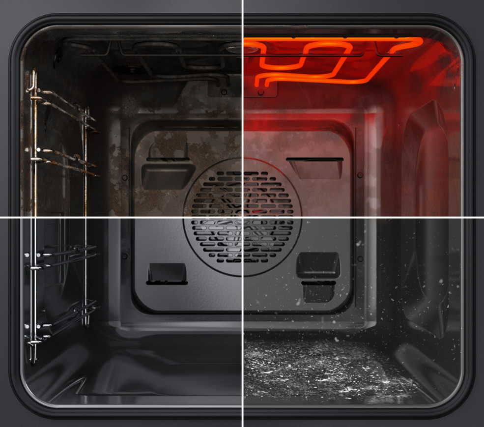 Функция, которая позволяет очищать духовой шкаф без каких-либо действий со стороны пользователя. Закройте дверцу духовки и установите программу пиролитической очистки. Духовой шкаф заблокируется и начнет набирать температуру 480-500°С. При такой температуре весь жир, который отложился на стенках духового шкафа, сгорает и превращается в пепел. Программа длится около 3 часов. Как только температура в рабочей камере опустится ниже 180°С, дверца разблокируется. Вам остается только смахнуть салфеткой остатки пепла. Результат - абсолютно чистая эмаль без лишний усилий.