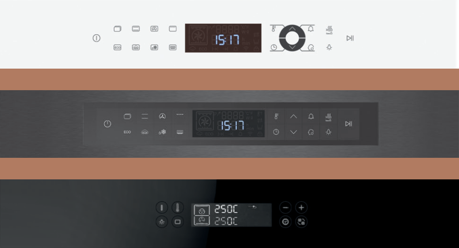 Серия Premium – это минималистичный дизайн, отсутствие излишних декоративных элементов и лаконичный блок управления. Можно выбрать три варианта исполнения приборов: гладкое черное стекло, белое стекло, черное стекло со вставками из нержавеющей стали. Стиль hi-tech в этой коллекции выражается не только во внешнем виде, но и в инновационном оснащении. Сверхчувствительное сенсорное управление, до 10 режимов нагрева, специальные программы приготовления.
