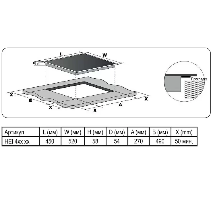 Размеры встраивания (ШхГхВ): 420х490 мм
