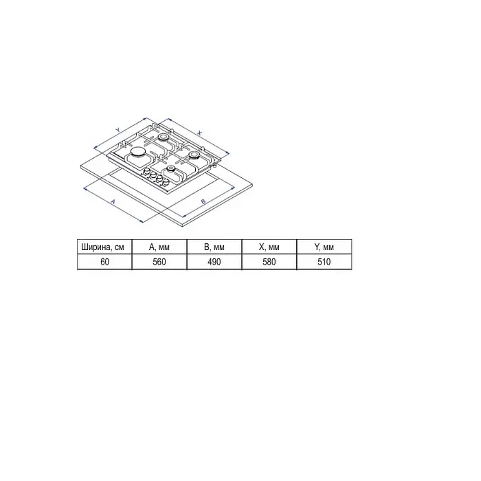 Размеры встраивания (ШхГхВ): 560х490 мм