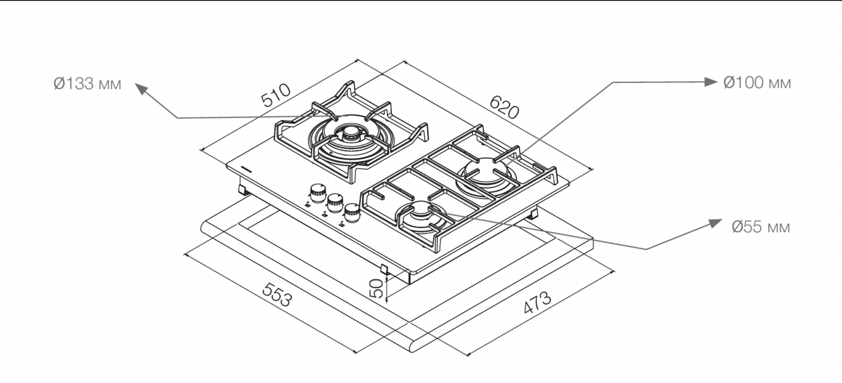Размеры ниши для встраивания (ШхГ): 553×473 мм