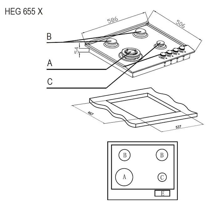 Размеры встраивания (ШхГхВ): 537х467 мм